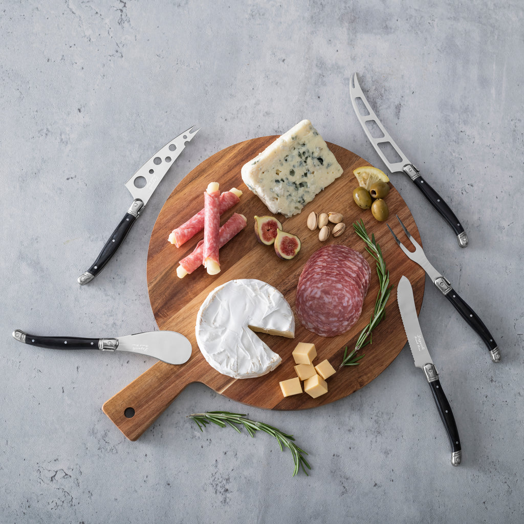 French Home Laguiole 5-Piece Artisan Cheese Knife Set with Black Pakkawood Handles