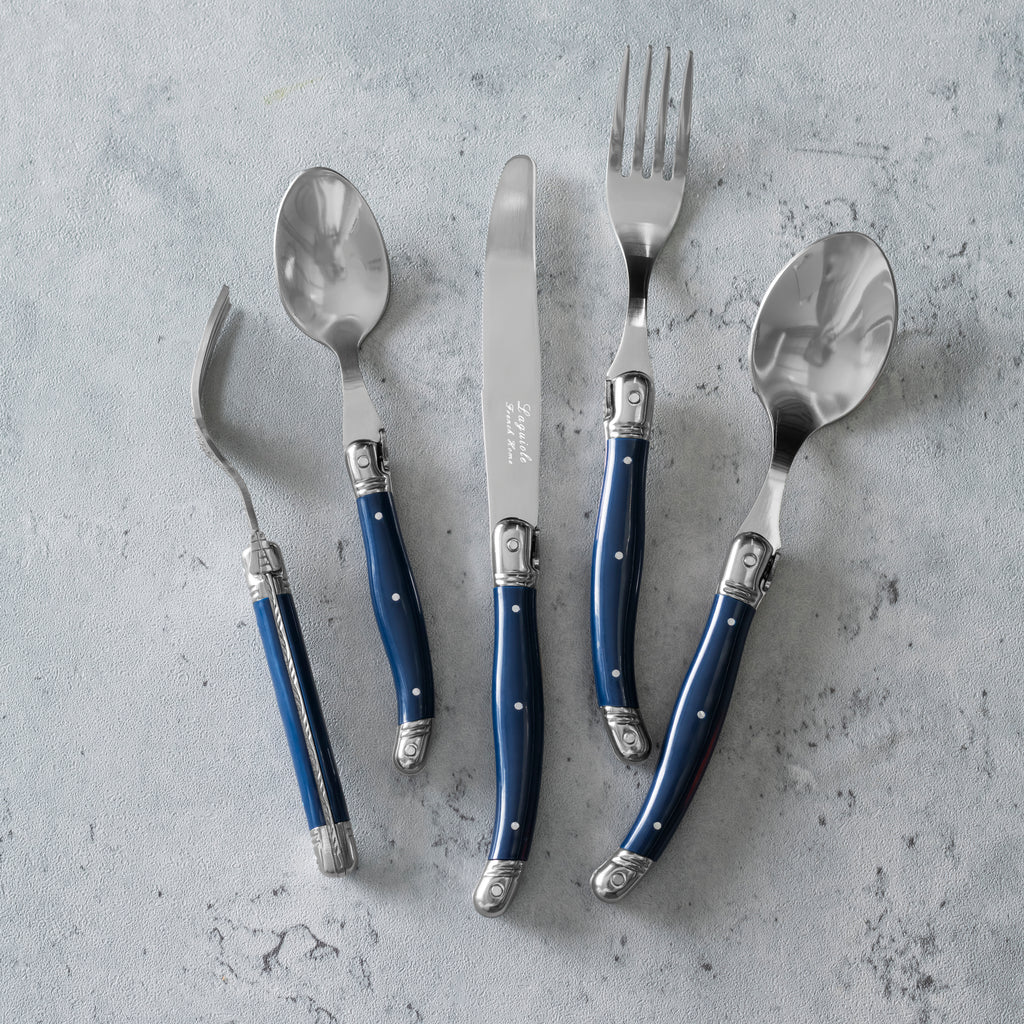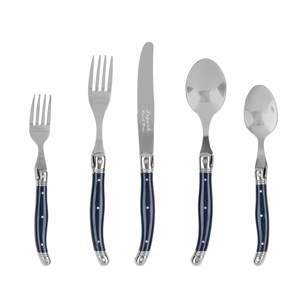 French Home Laguiole Connoisseur 20-Piece 18/10 Stainless-Steel Flatware Set with Navy Handles