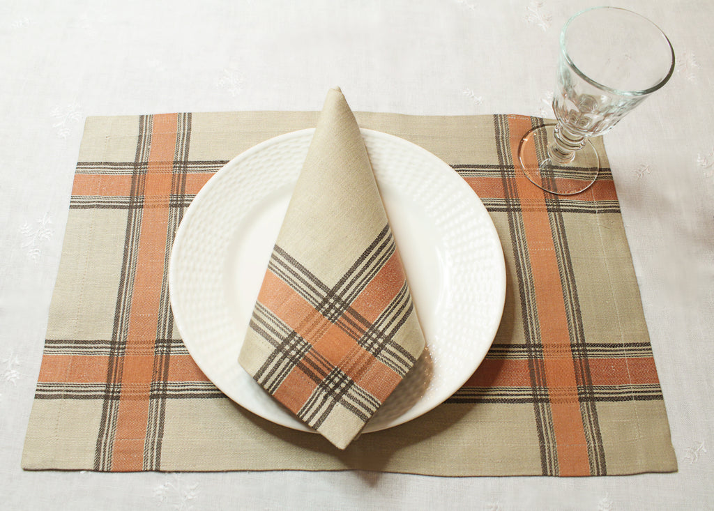 | Enhance your dining room décor with French Home’s luxurious 14’’ x 21’’ Boulevard 100% woven linen placemats made in Portugal. The bold border of terracotta and chocolate overlapping stripes in varying degrees of thickness against a serene tan backdrop is spectacularly showcased by the jacquard fabric and is the ideal foundation for a beautiful table setting. When taken care of properly, these high-quality linen placemats can provide a lifetime of use. Steaming or ironing is required for peak smoothness and crispness after cleaning, in your washing machine or professionally.