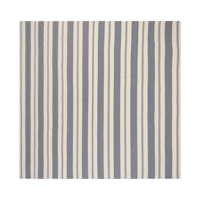 Bring effortless refinement to your dining with French Home’s timeless Blue and Cream Striped Tablecloth. Designed in Paris and hand-crafted by artisans in Guinea from 100% premium cotton, this 71” x 95” tablecloth has a classic French design of blue stripes framed by pinstripes against a natural cream-colored background, evoking elegant coastal living and creating a casual ambiance that feels relaxed and elevated. Ideal for hosting everyday meals, weekend brunches, and elegant gatherings, this tablecloth brings a warm, welcoming, and beautiful style.