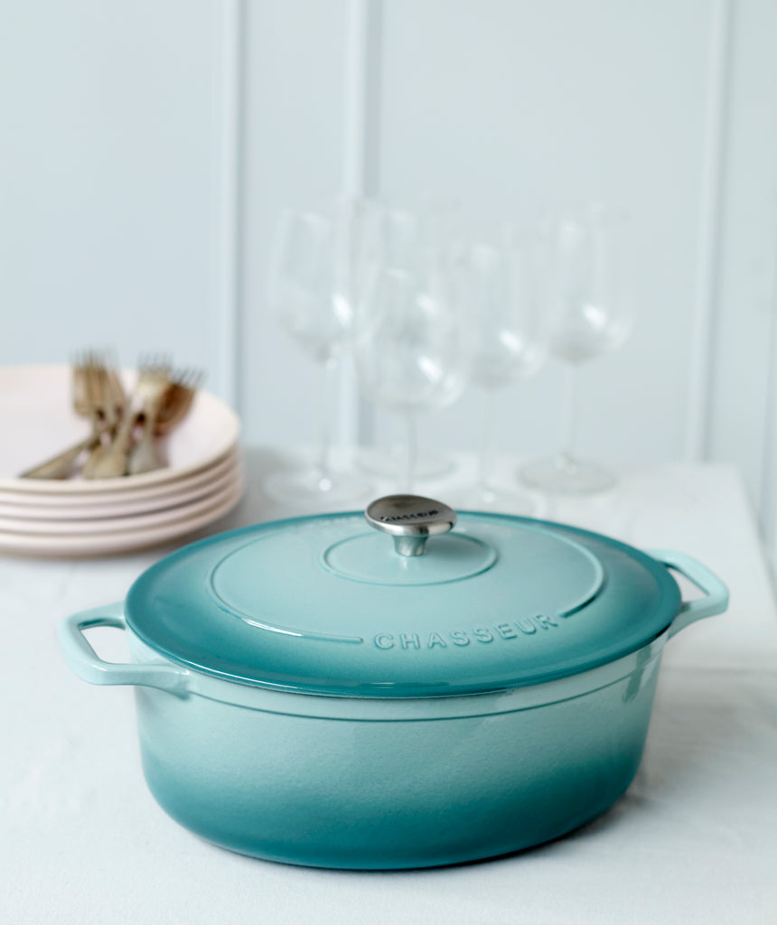 Chasseur French Enameled Cast Iron Oval Dutch Oven, 7.25-quart, Quartz Blue