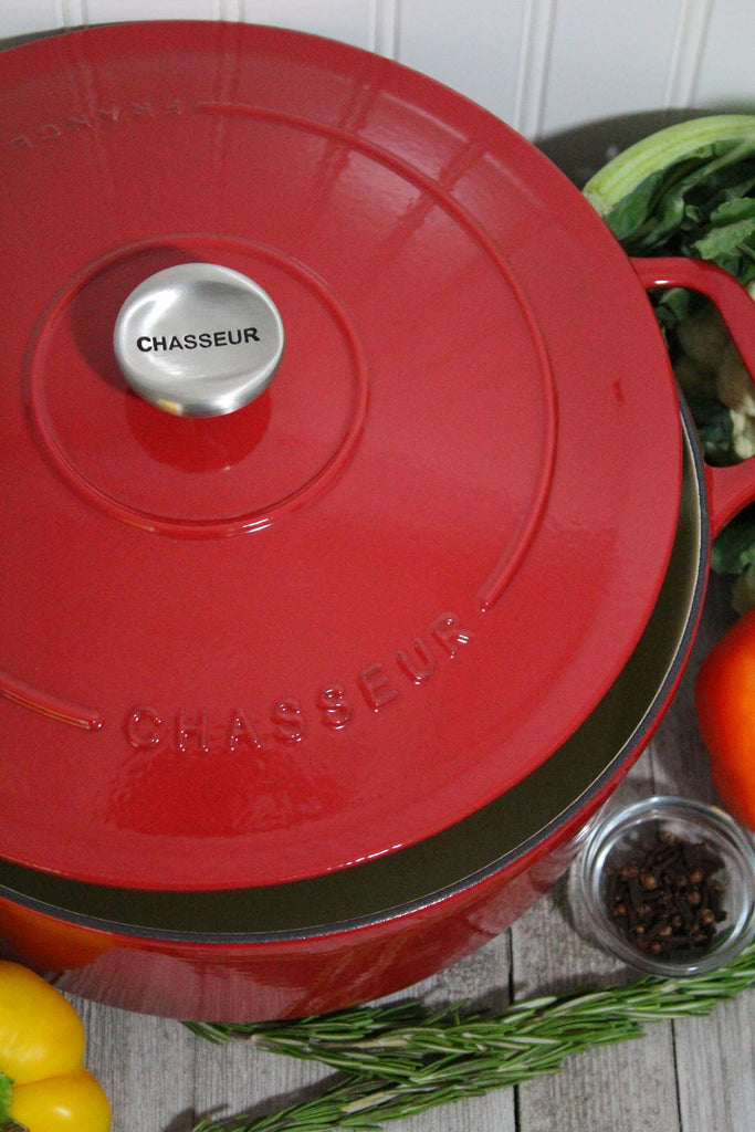 Made in France, Chasseur heavy-bottomed Dutch ovens are perfect for cooking delicious soups and stews, searing and braising meat, caramelizing vegetables and baking bread. Valued for its versatility on all cooking surfaces, its even heating properties, energy saving and exceptional browning capability. Premium quality and the ease with which it can be cleaned make Chasseur enameled cast iron the best choice for cookware. Each Dutch Oven comes with a heavy cast iron lid to lock in flavors and taste and an elegant stainless steel knob safe to 500 degrees. The enamel does not chip, the pot can withstand very high temperature's and will give a lifetime of service.