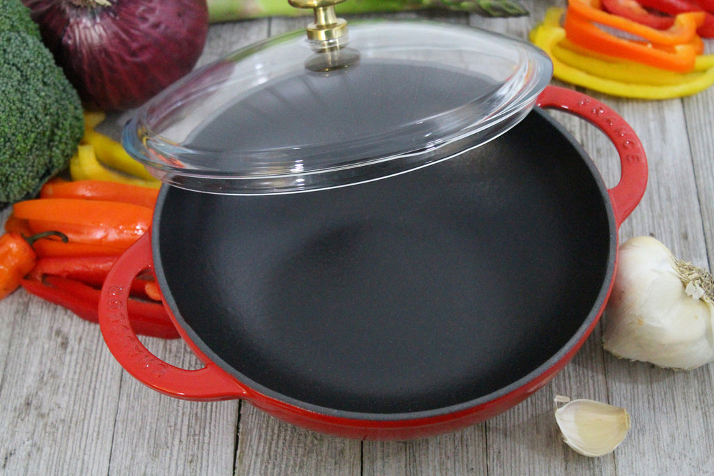 Chasseur French Enameled Cast Iron Wok with Glass Lid, 7-inch Diameter, Red