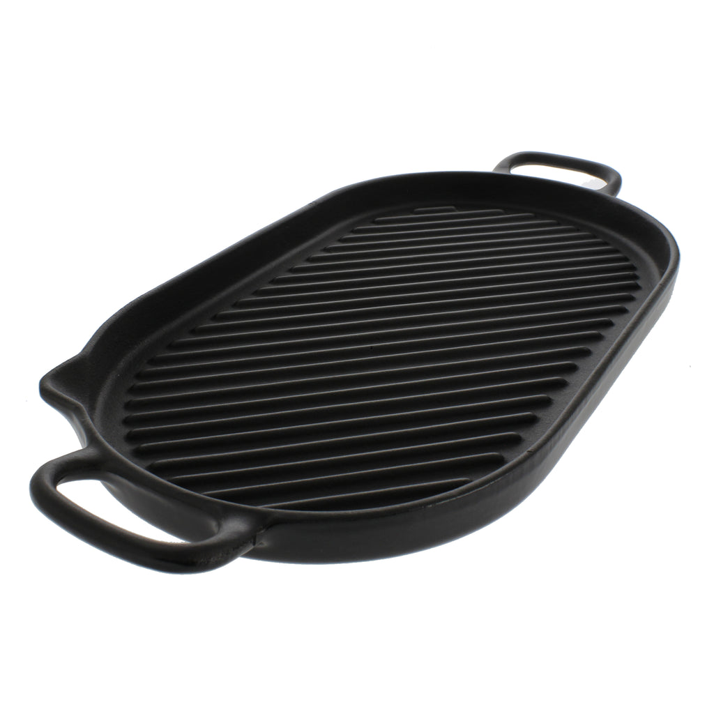 Chasseur French Large Oval Cast Iron Grill Pan, 18-inch, Black