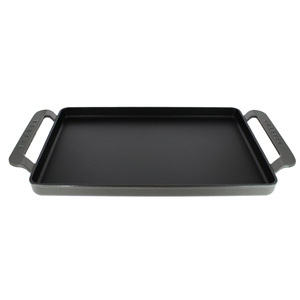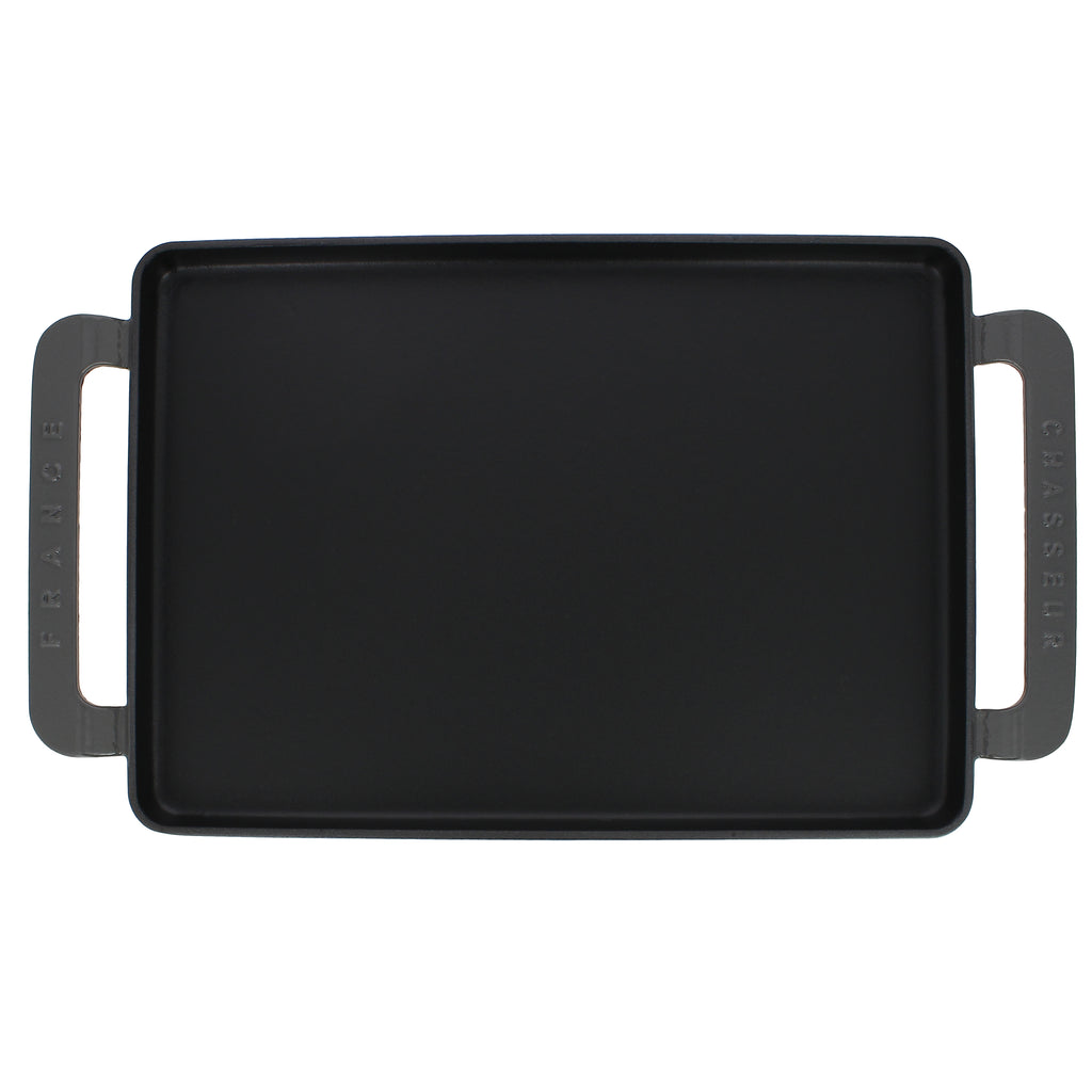 Chasseur French Rectangular Enameled Cast Iron Griddle, 14-inch, Caviar Grey