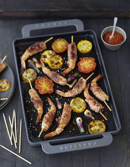| The Chasseur cast iron griddle is perfect for cooking delicious burgers, shellfish, roasted vegetables and fluffy pancakes. This griddle is constructed of thick cast iron to maintain its temperature and evenly distribute the heat for optimal cooking conditions. It can be used on all cooking surfaces. The exterior is treated with double layers of enamel to ensure many years of use. |