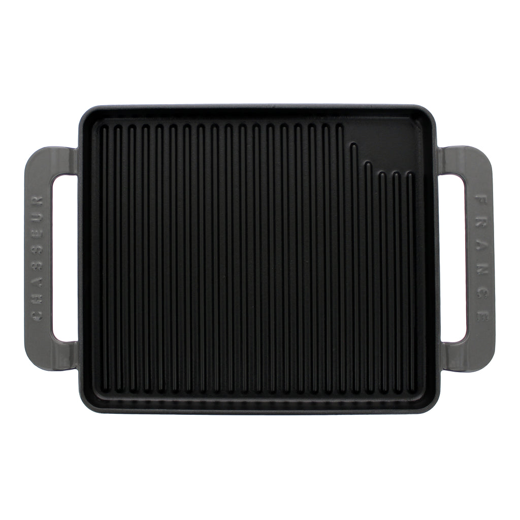 Chasseur French Rectangular Enameled Cast Iron Grill, 10-inch, Caviar Grey