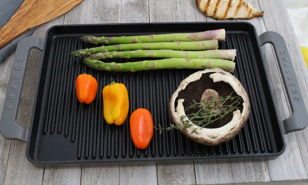 The Chasseur Cast Iron Rectangular Grill Pan is perfect for grilling steaks, delicious burgers, shellfish and roasted vegetables. This grill is constructed of thick cast iron to maintain its temperature and evenly distribute the heat for optimal cooking conditions. While cooking, ridges allow excess fat and grease to drain.