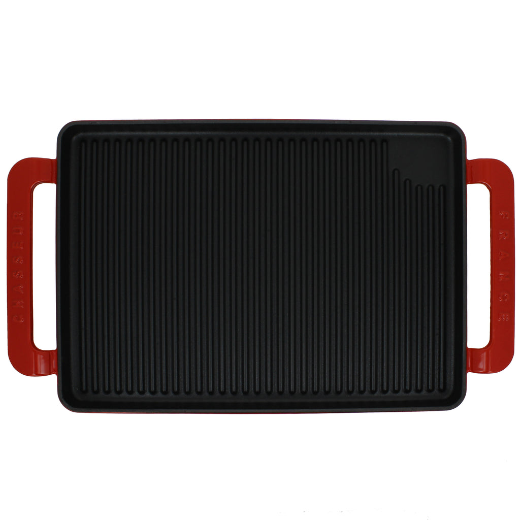 Chasseur 14-inch Flame Rectangular Enameled Cast Iron Grill Pan with Handles Red or Grey (CI_3360)