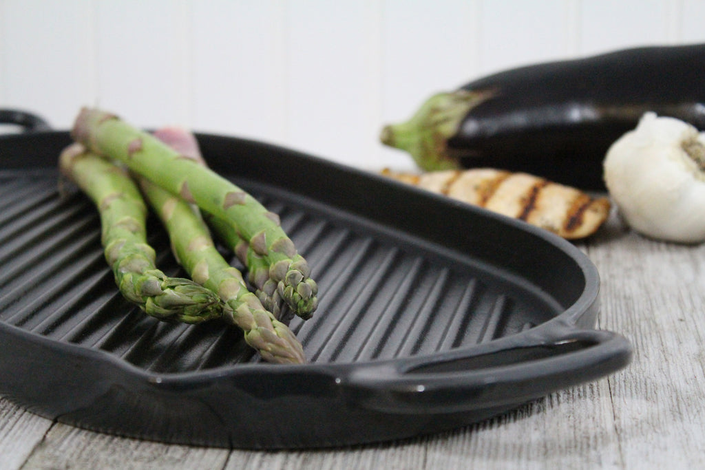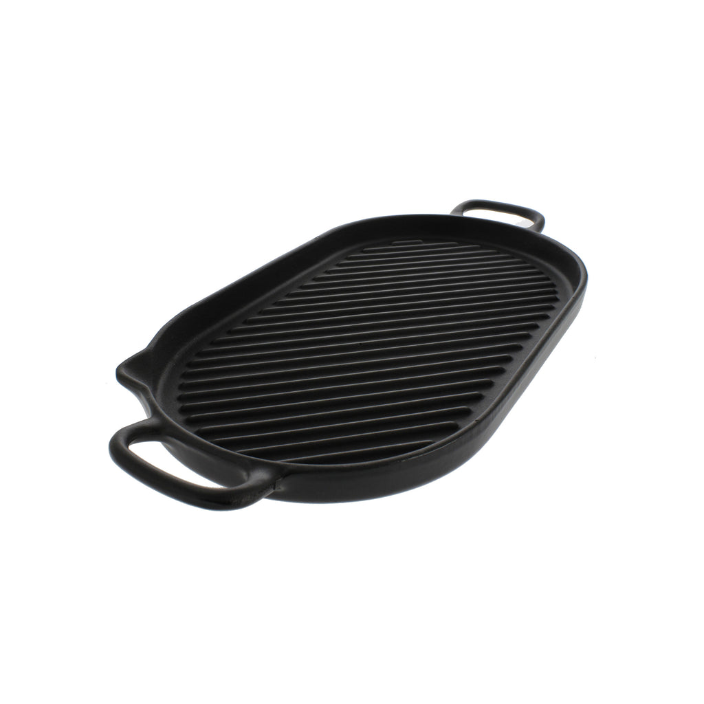 The Chasseur oval cast iron grill provides all the flavor of an outdoor grill, with all the convenience of indoor cooking. This grill pan is constructed of thick cast iron to maintain its temperature during cooking, making it ideal for grilling anytime. While cooking, ridges allow excess fat and grease to drain. Easy to clean and easy to use, this grill pan is the perfect addition to any kitchen.